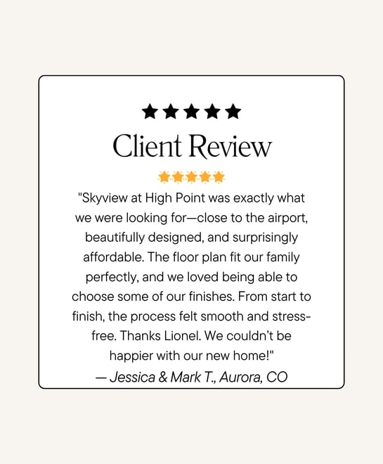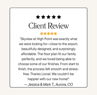 Skyview at High Point is one of the fastest-growing communities in Aurora, offering modern, energy-efficient homes just minutes from DIA and E-470. Whether you're a first-time buyer, relocating, or looking to upgrade, Iâm here to make your journey simple, stress-free, and personalized to your needs.